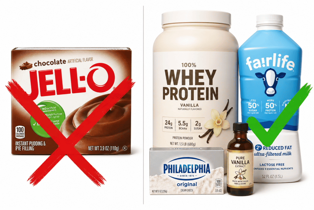 Pudding mix contains stabilizers (cornstarch, guar gum) that help prevent ice crystals and create a smoother texture. This recipe replaces those stabilizers with cream cheese and optional xanthan gum — achieving the same result with cleaner ingredients.