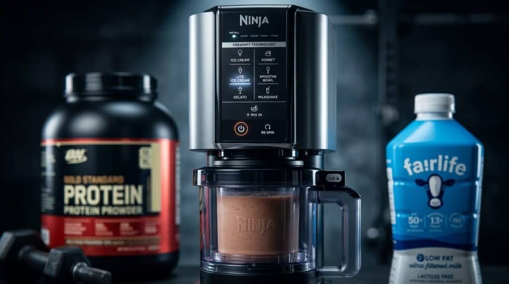 Casein Protein Powder (over whey) Casein freezes differently than whey. It’s thicker, creamier, and holds its structure better when frozen solid. Whey protein works too, but casein gives you noticeably better texture in the Ninja Creami.