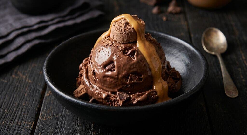 Remove the pint from the freezer and let it sit on the counter for exactly 3–5 minutes. This is slightly longer than most recipes suggest — protein bases freeze harder than regular ice cream bases and need a bit more tempering time.