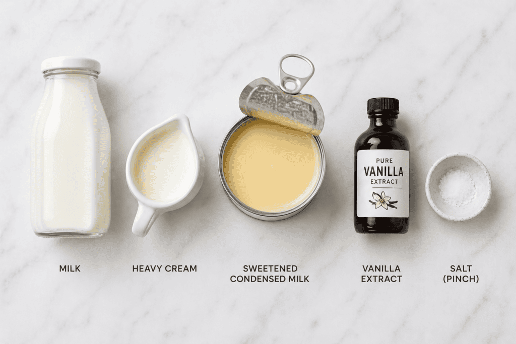 | Sweetened condensed milk | ⅓ cup (100g) | Nestlé or store brand both work |